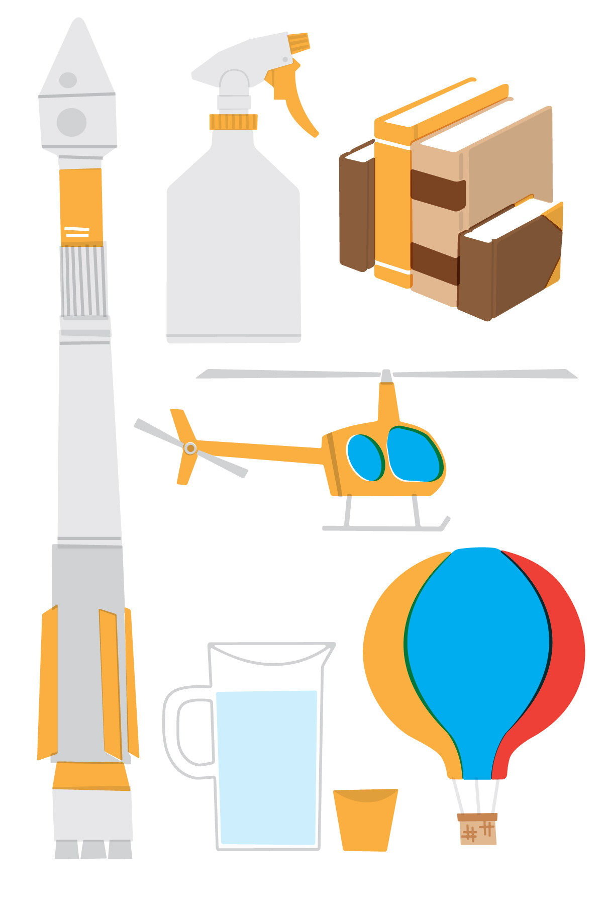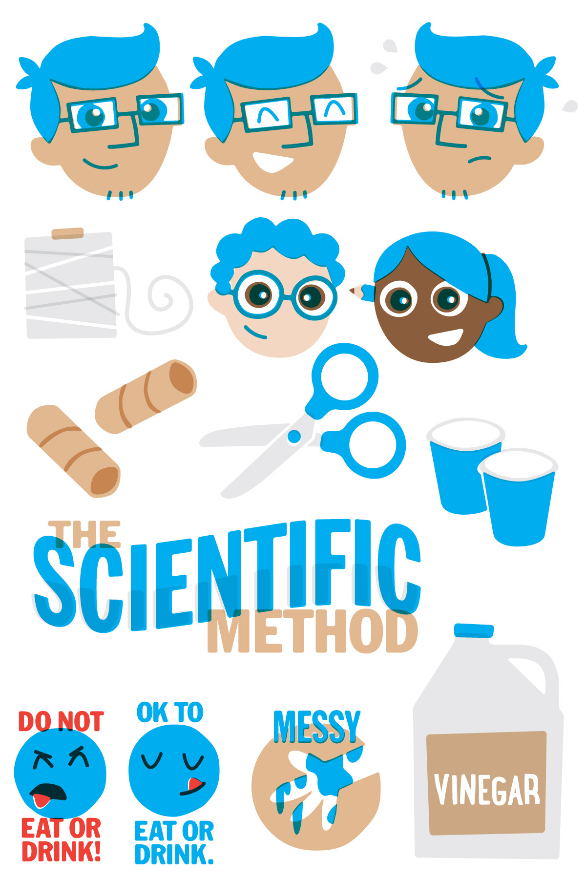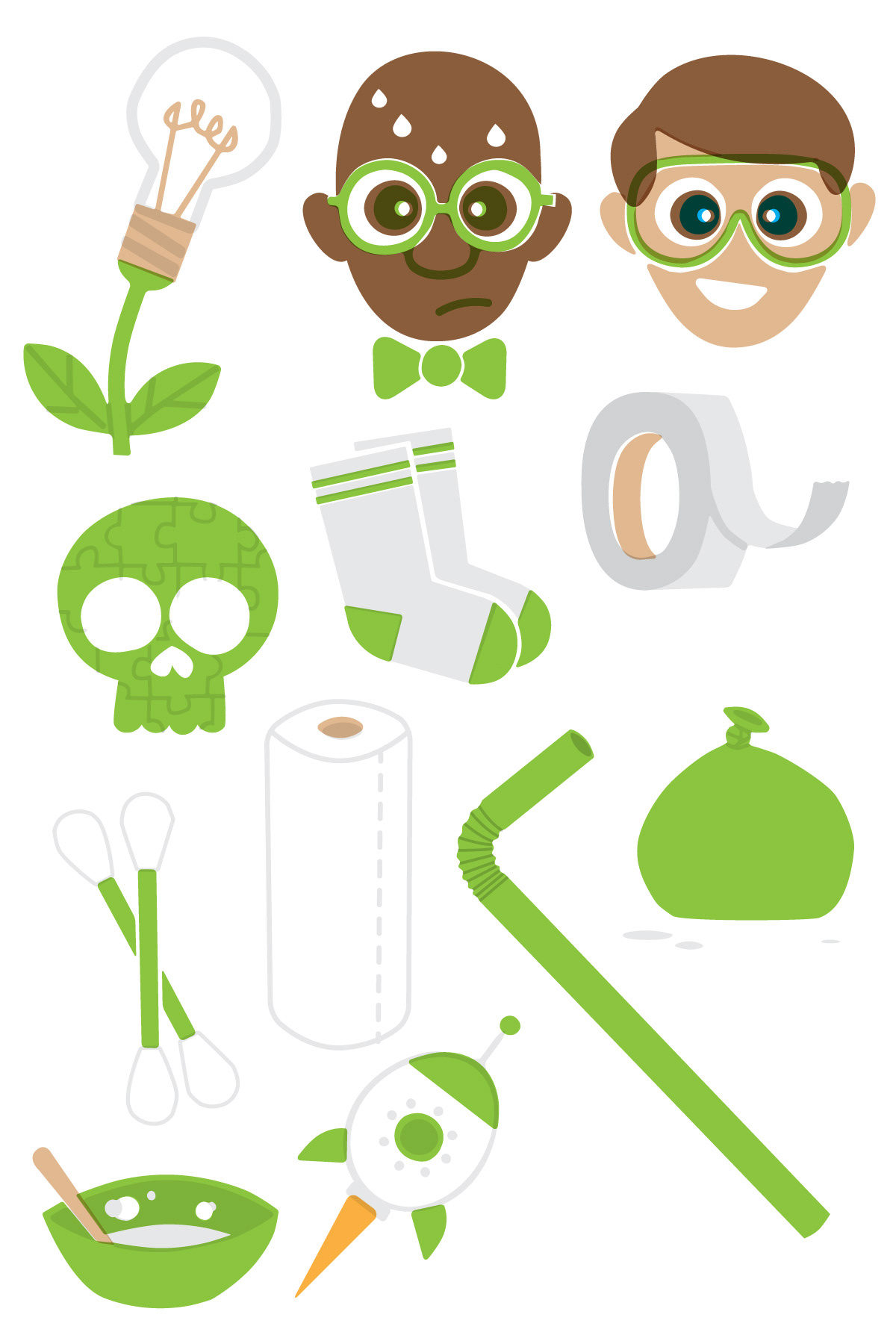 This is a small collection of the various spot illustrations created for the book "Crazy for Science", a book of children's science experiments. Published by POW! Kids Books.