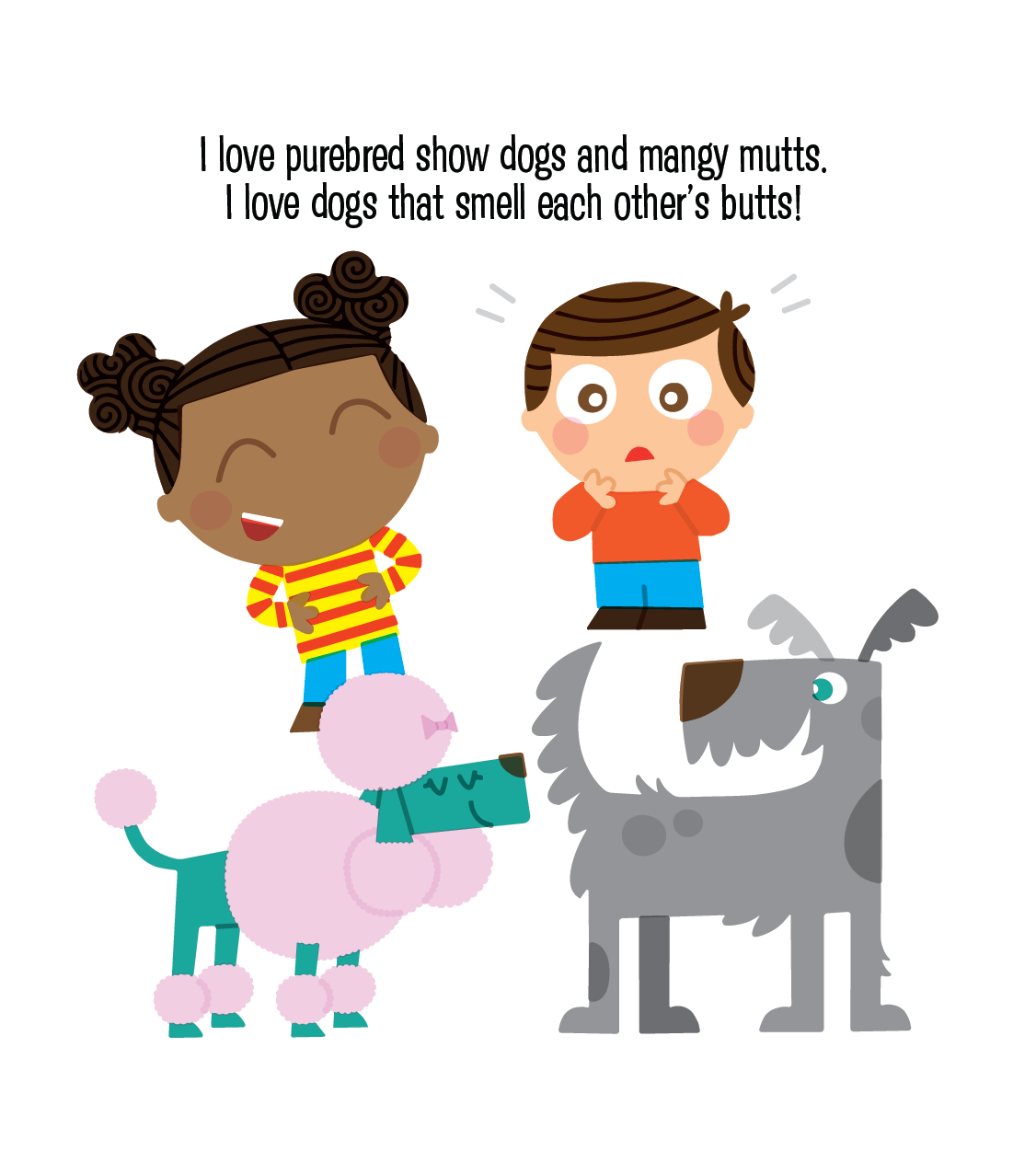 If your kids are like mine, reading “…dogs that smell each other’s butts!” will always be funny. "Dogs, Dogs, Dogs: I Love Them All" was published by