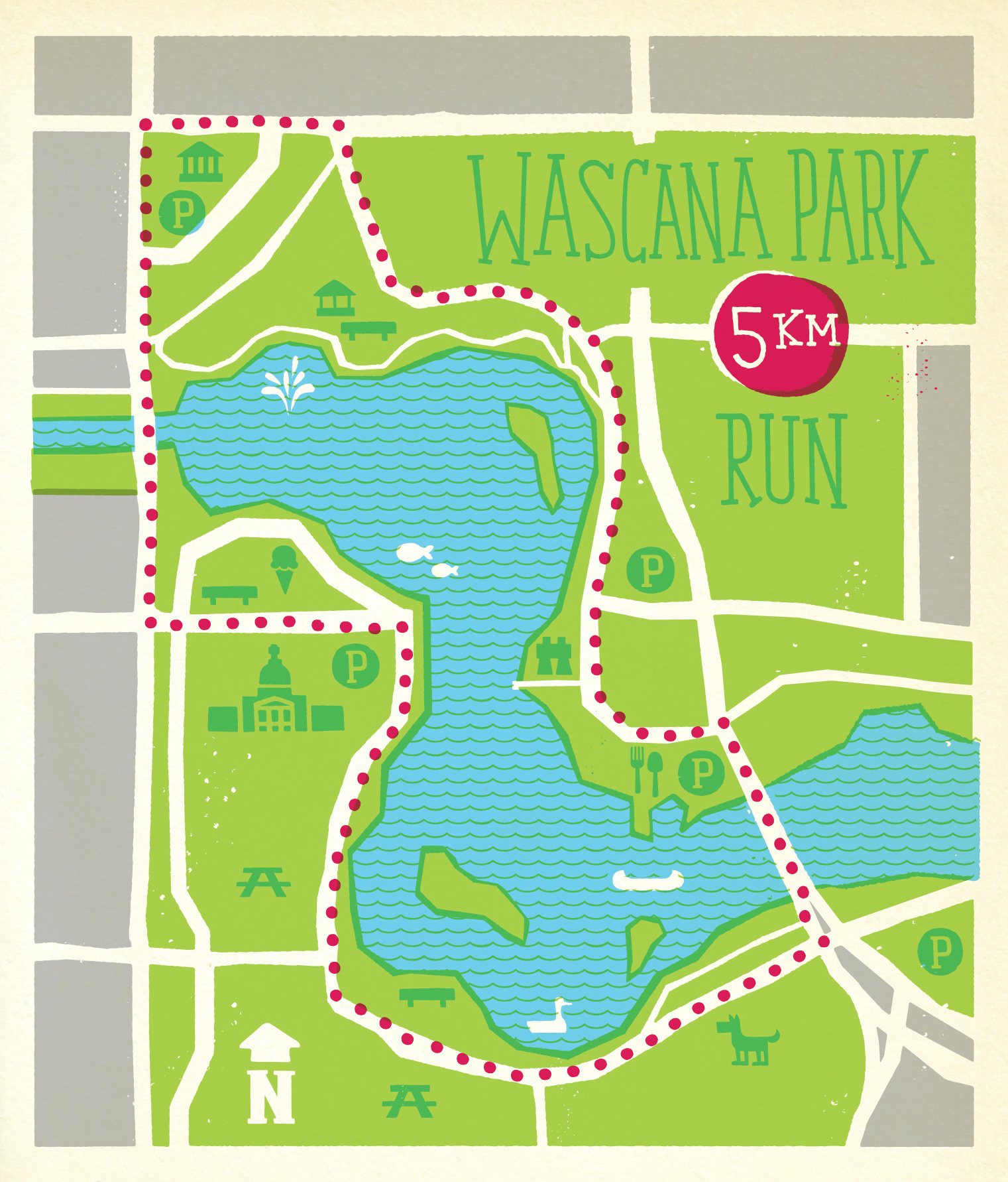 A 5-kilometre route through Wascana Park for runners/joggers.